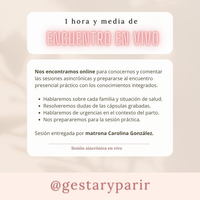 - Sesión de 1,5 hr de conversatorio online.